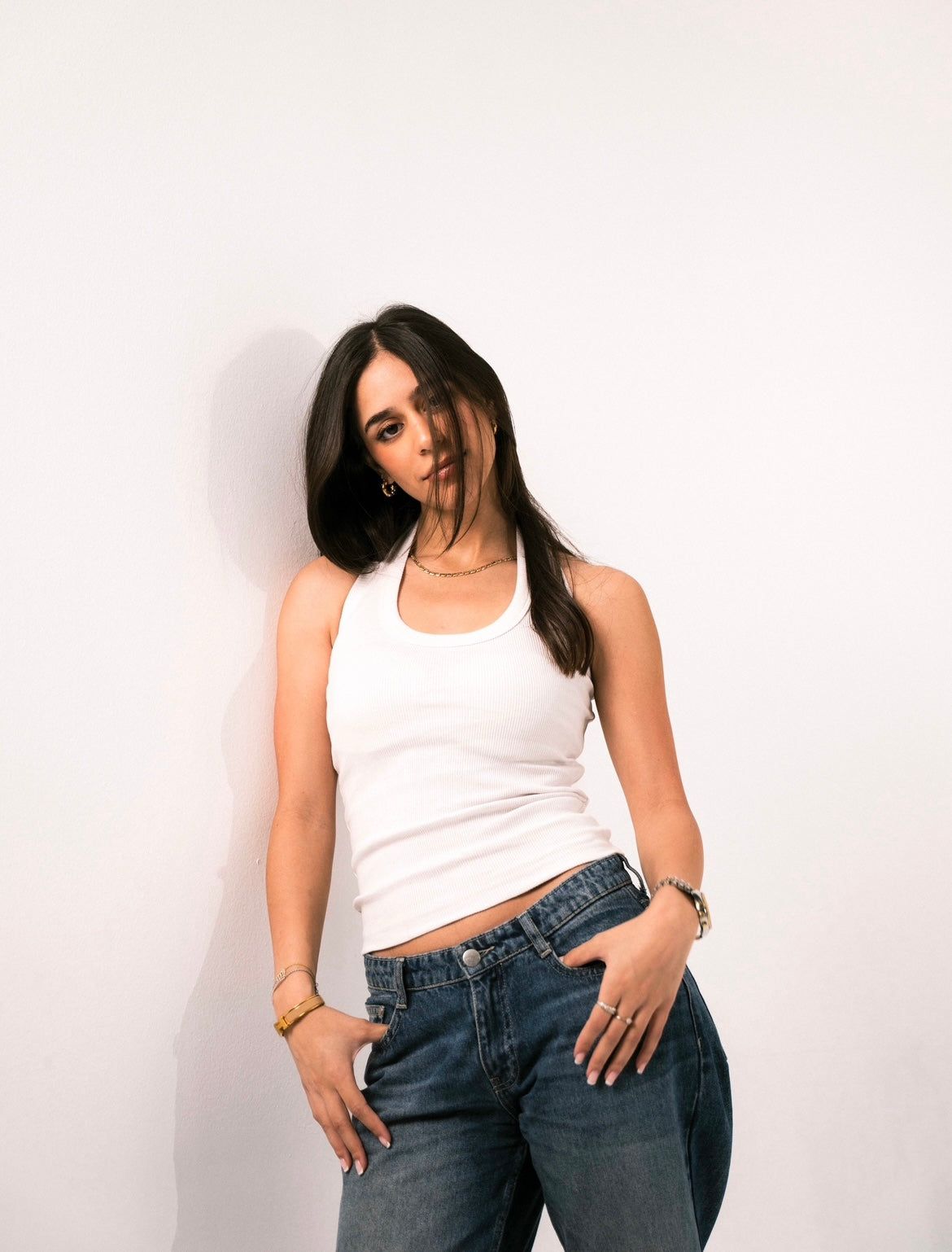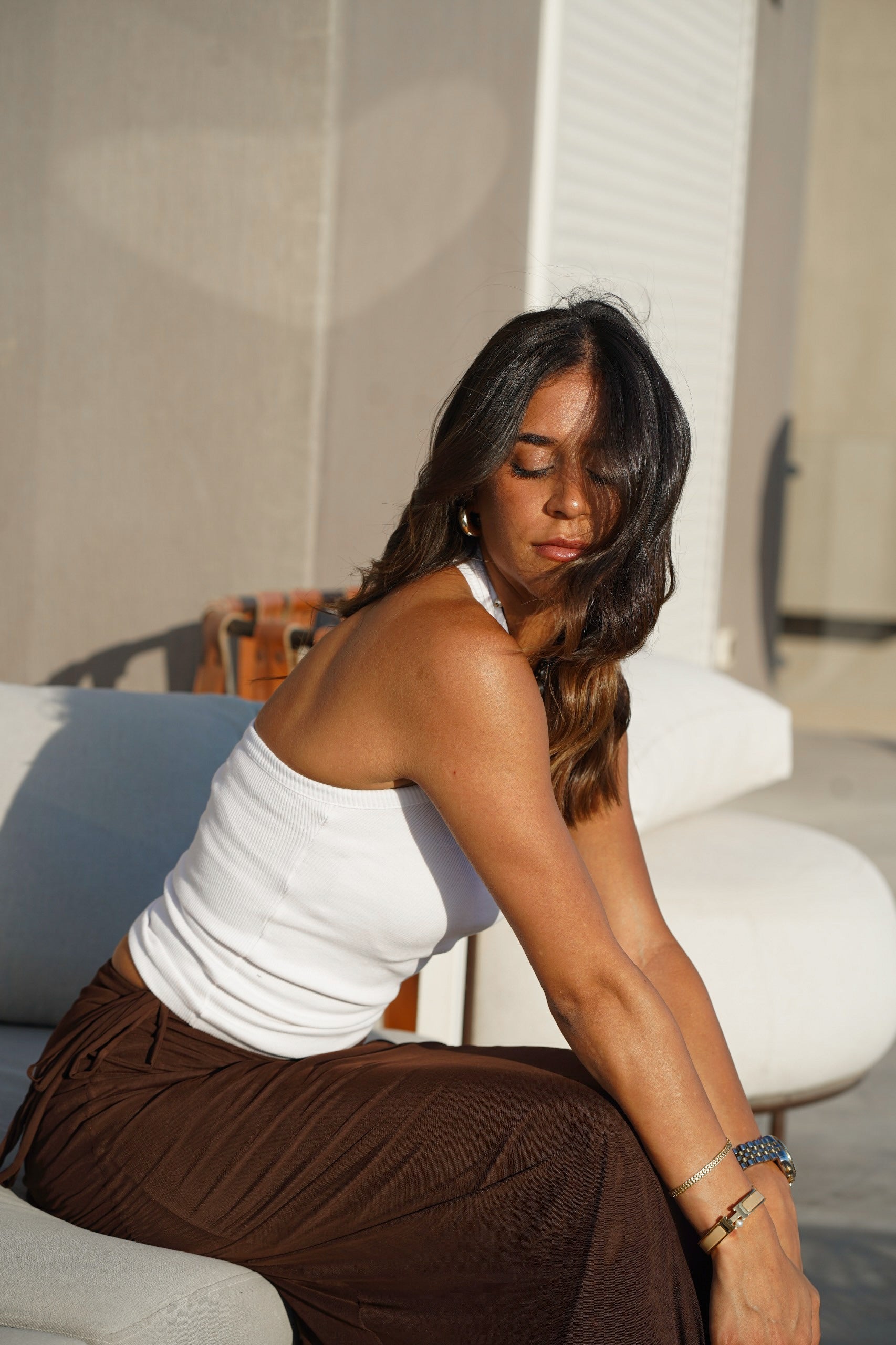 "Essential ribbed halter neck Lola top with an open back detail, made from 100% cotton, perfect for layering or standing out on its own "